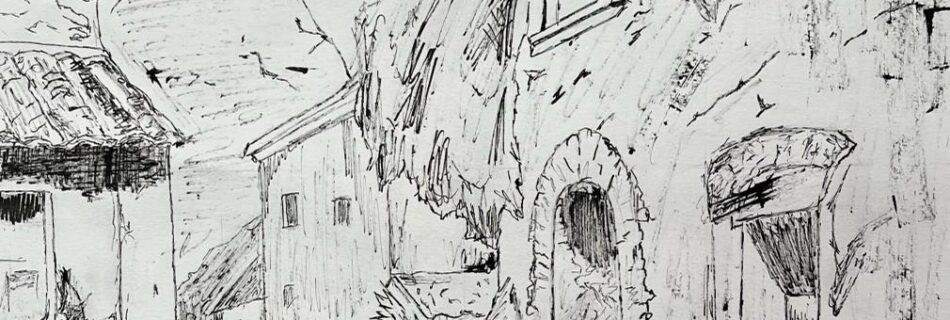 Dibujos a tinta con palillo de los alumnos de 4ºExpresión Artística.